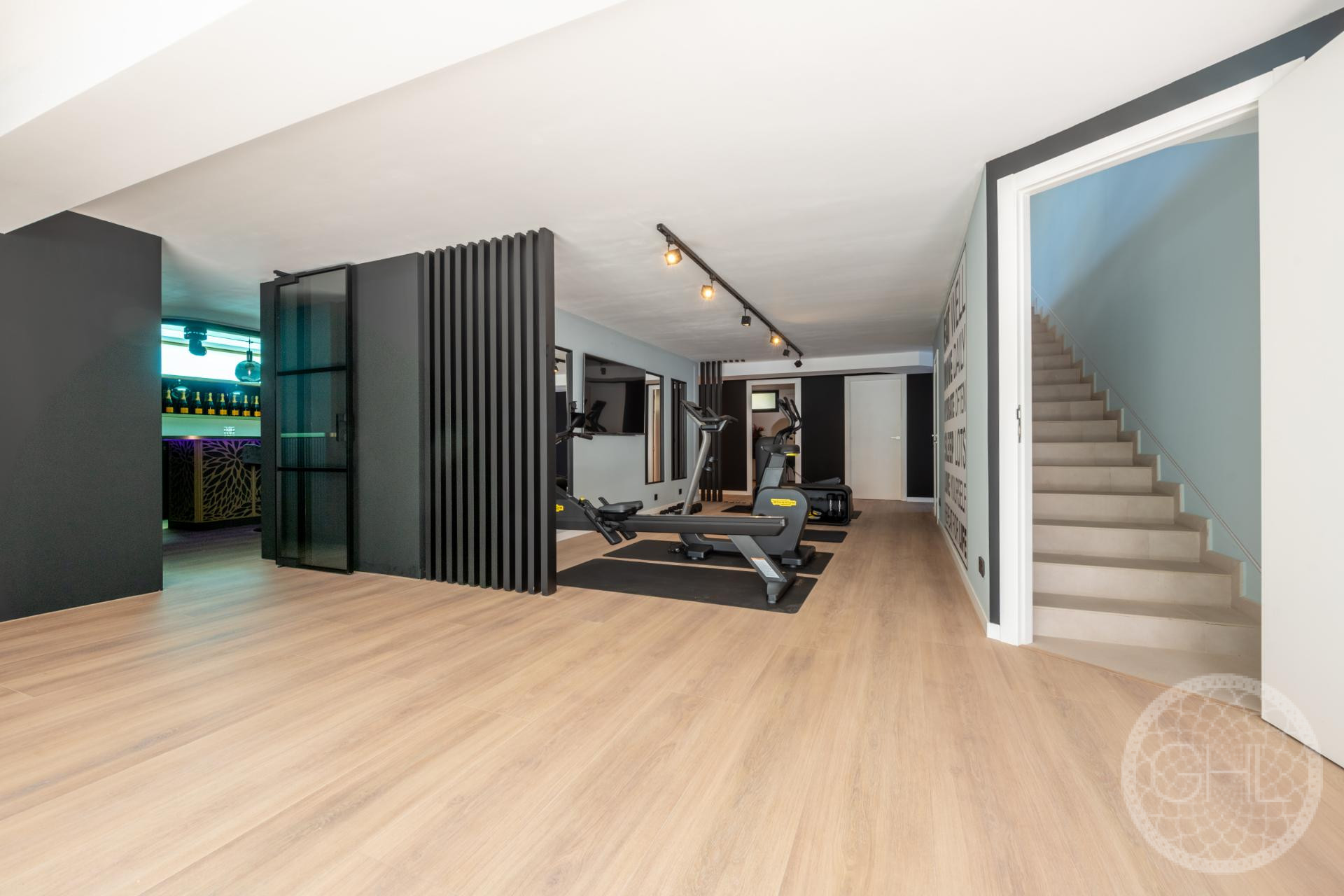 Floor-to-ceiling glass doors lead to a stunning pool with a transparent edge, complemented by a jacuzzi and carefully curated lounging areas. Landscaped gardens, sun-drenched terraces and an automated irrigation system create a setting designed for year-round enjoyment.