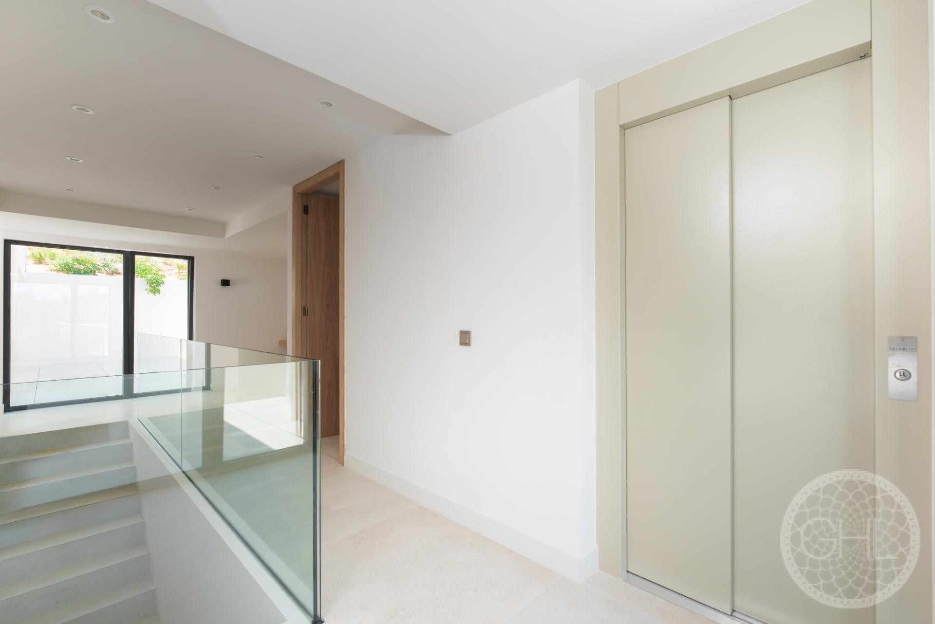 Attention to detail is evident throughout: travertine stone bathrooms, bespoke wooden shutters, and seamless finishes that extend from interiors to outdoor terraces. Smart home technology, advanced climate control, and a private lift ensure convenience is at the heart of everyday living.